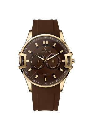 ساعت اورینتال مردانه کد O.SH218G-0202، ساعتی بسیار زیبا با رفرانس 218، از نوع کرنوگراف بوده و جنس بند آن، فلزی می باشد. رنگ قاب این محصول، مشکی ، رنگ بند آن سرمه ای و رنگ صفحه آن بادنجانی بوده و استایلی زیبا برای شما فراهم می کند.