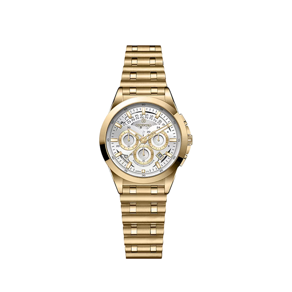 ساعت اورینتال زنانه کد O.SH271L-0001 ، ساعتی بسیار زیبا با رفرانس 271 ، از نوع کرنوگراف بوده و جنس بند آن، فلزی می باشد. رنگ قاب این محصول، طلایی، رنگ بند آن طلایی و رنگ صفحه آن سیلور بوده و استایلی زیبا برای شما فراهم می کند.