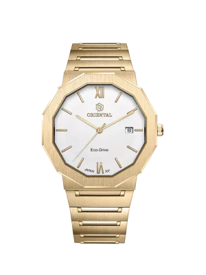 ساعت اورینتال مردانه کد O.SH283G-0003 ، ساعتی بسیار زیبا با رفرانس 283 ، از نوع کلاسیک بوده و جنس بند آن، فلزی می باشد. رنگ قاب این محصول، استیل طلایی، رنگ بند آن استیل طلایی و رنگ صفحه آن سیلور بوده و استایلی زیبا برای شما فراهم می کند.