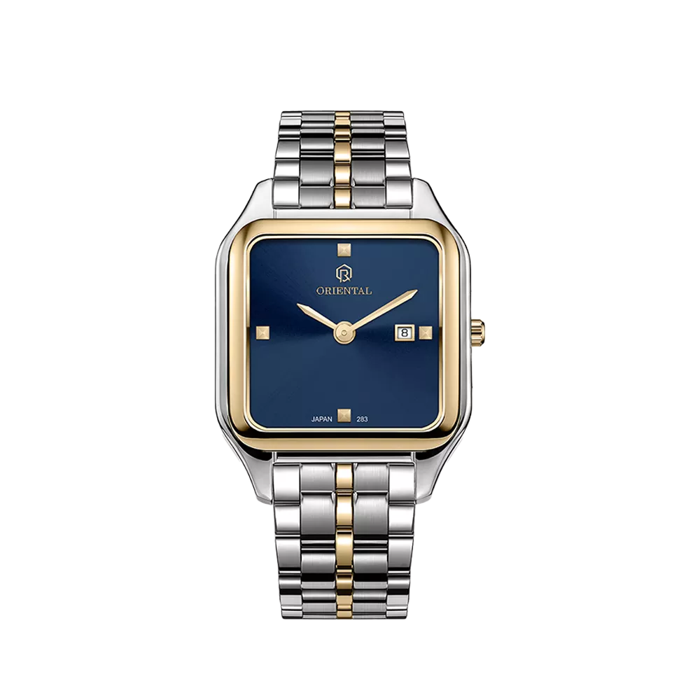 ساعت اورینتال مردانه کد O.SH283G-0101 ، ساعتی بسیار زیبا با رفرانس 283 ، از نوع کلاسیک بوده و جنس بند آن، فلزی می باشد. رنگ قاب این محصول، استیل طلایی، رنگ بند آن استیل طلایی و رنگ صفحه آن سرمه ای بوده و استایلی زیبا برای شما فراهم می کند.