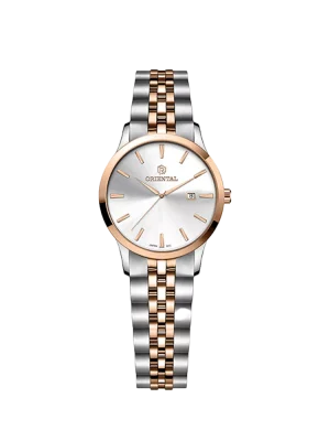 ساعت اورینتال زنانه کد O.SH283L-0006 ، ساعتی بسیار زیبا با رفرانس 283 ، از نوع کلاسیک بوده و جنس بند آن، فلزی می باشد. رنگ قاب این محصول، استیل رزگلد، رنگ بند آن استیل رزگلد و رنگ صفحه آن سیلور بوده و استایلی زیبا برای شما فراهم می کند.