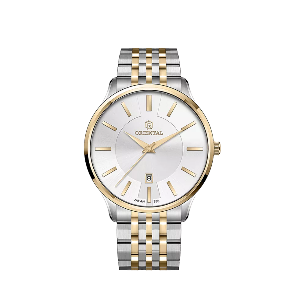 ساعت اورینتال مردانه کد O.SH288G-0003 ، ساعتی بسیار زیبا با رفرانس 288 ، از نوع کلاسیک بوده و جنس بند آن، فلزی می باشد. رنگ قاب این محصول، استیل طلایی، رنگ بند آن استیل طلایی و رنگ صفحه آن سیلور بوده و استایلی زیبا برای شما فراهم می کند.
