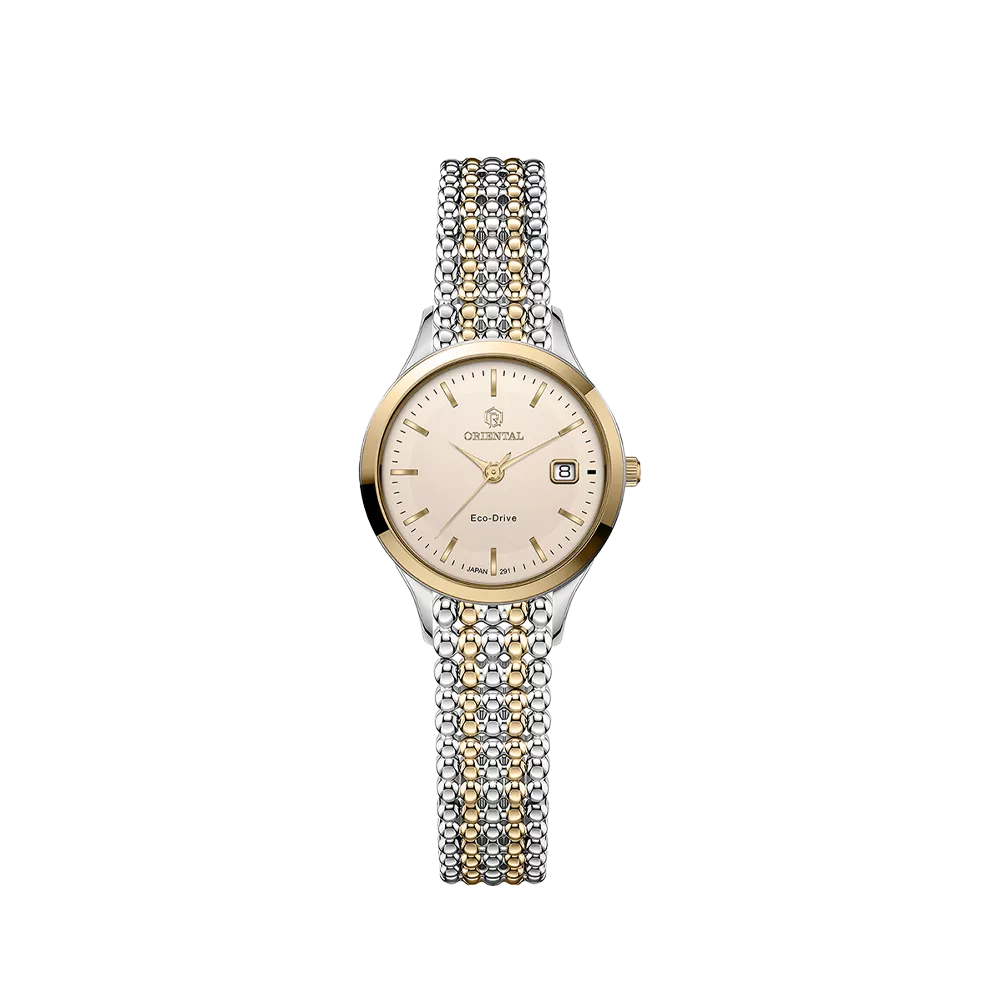 ساعت اورینتال زنانه کد O.SH291L-0016 ، ساعتی بسیار زیبا با رفرانس 291 ، از نوع کلاسیک – اکودرایو بوده و جنس بند آن، فلزی می باشد. رنگ قاب این محصول، استیل طلایی، رنگ بند آن استیل طلایی و رنگ صفحه آن شامپاین بوده و استایلی زیبا برای شما فراهم می کند.