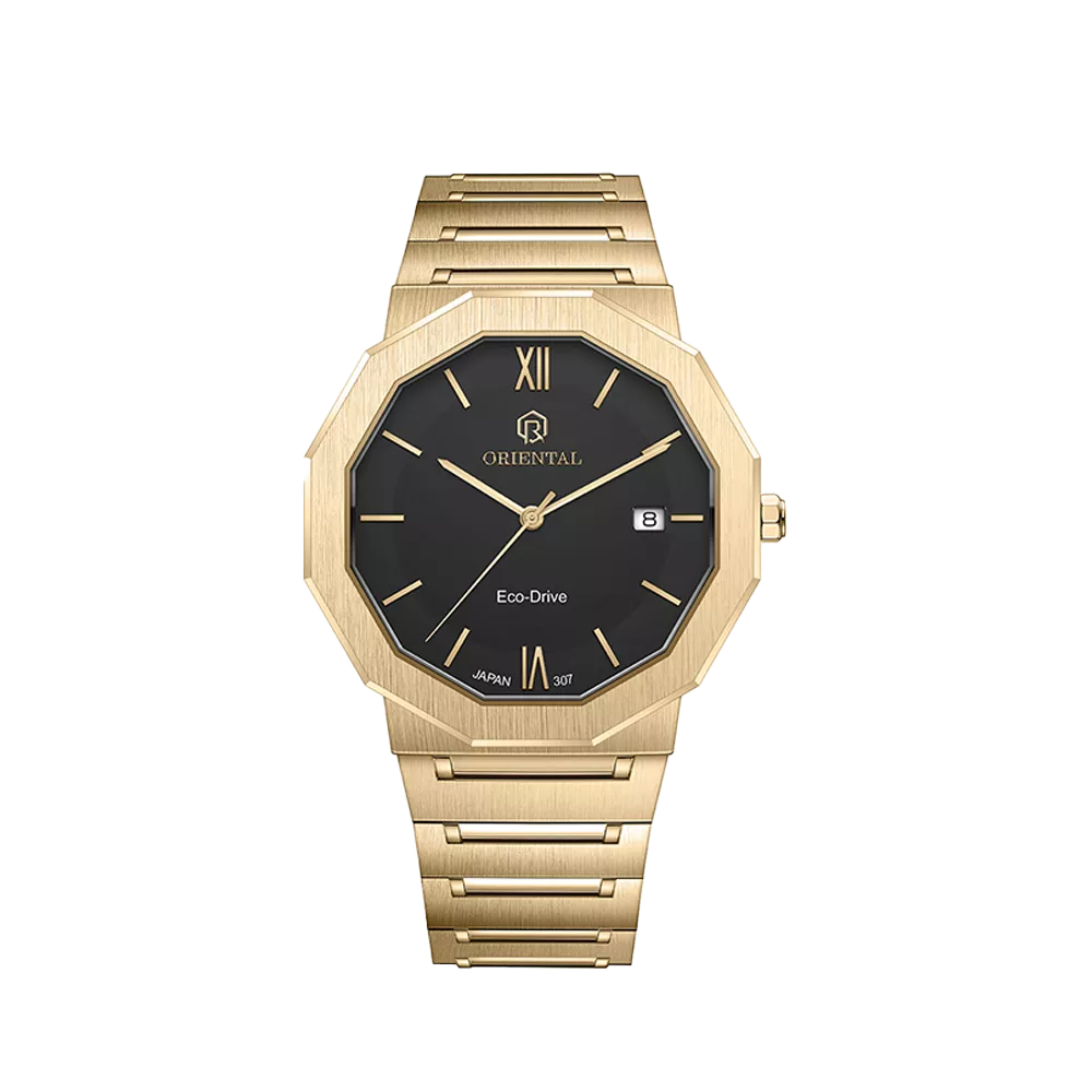 ساعت اورینتال مردانه کد O.SH307G-0002 ، ساعتی بسیار زیبا با رفرانس 307 ، از نوع کلاسیک – اکودرایو بوده و جنس بند آن، فلزی می باشد. رنگ قاب این محصول، طلایی، رنگ بند آن طلایی و رنگ صفحه آن مشکی بوده و استایلی زیبا برای شما فراهم می کند.