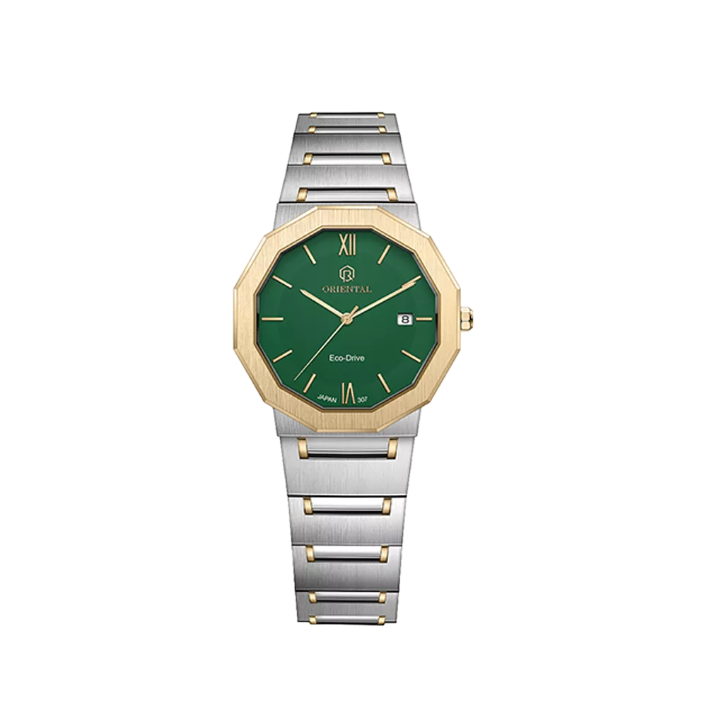 ساعت اورینتال زنانه کد O.SH307L-0100 ، ساعتی بسیار زیبا با رفرانس 307 ، از نوع کلاسیک – اکودرایو بوده و جنس بند آن، فلزی می باشد. رنگ قاب این محصول، استیل طلایی، رنگ بند آن استیل طلایی و رنگ صفحه آن سبز بوده و استایلی زیبا برای شما فراهم می کند.