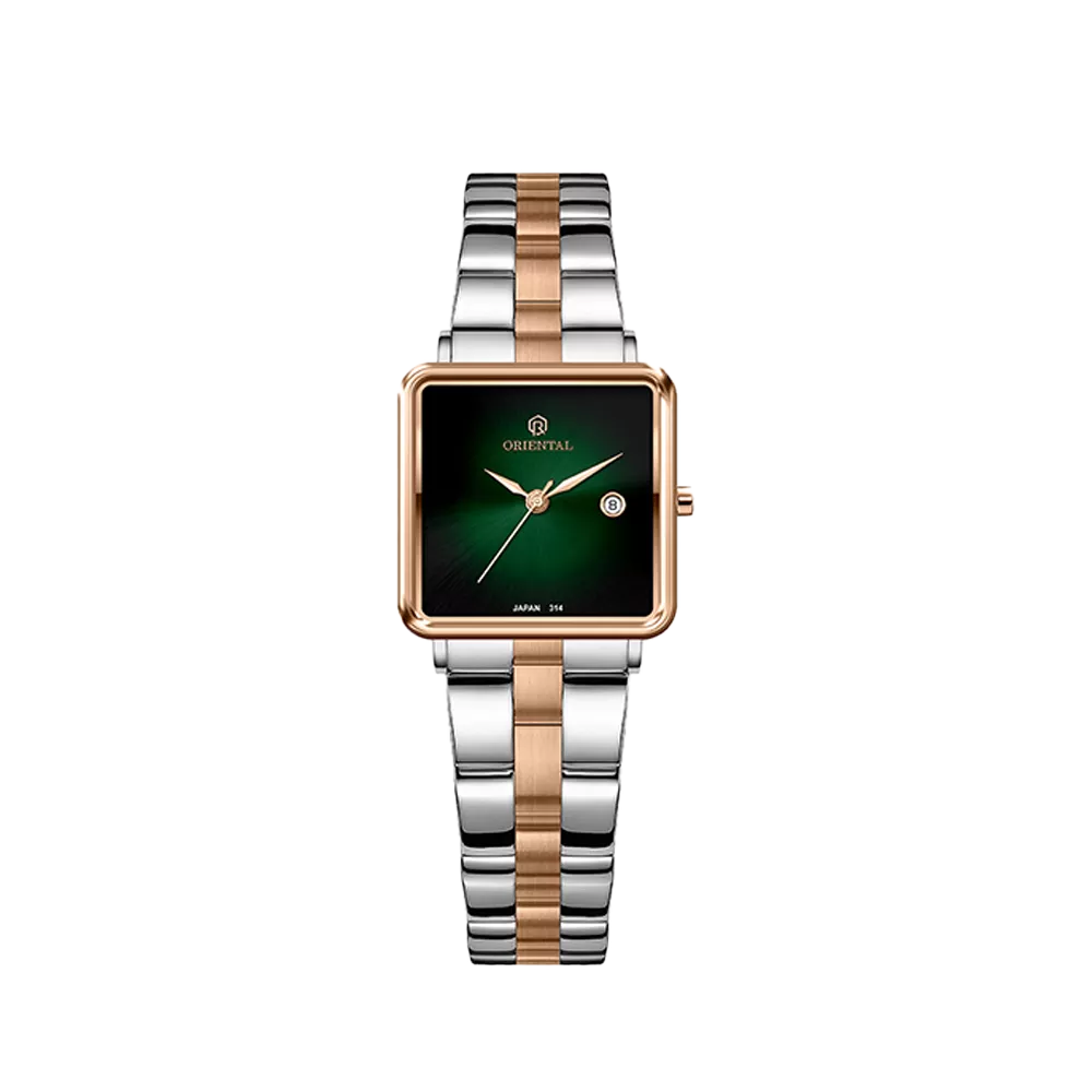 ساعت اورینتال زنانه کد O.SH314L-0088 ، ساعتی بسیار زیبا با رفرانس 314 ، از نوع کلاسیک بوده و جنس بند آن، فلزی می باشد. رنگ قاب این محصول، استیل رزگلد، رنگ بند آن استیل رزگلد و رنگ صفحه آن سبز بوده و استایلی زیبا برای شما فراهم می کند.
